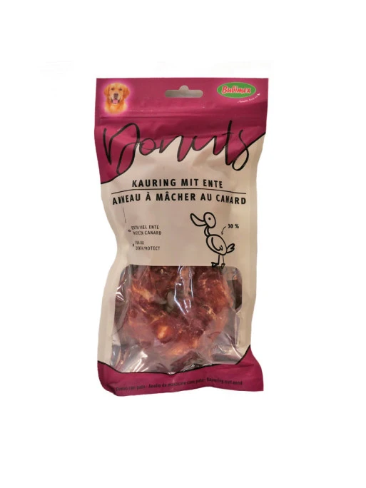 Les donuts au canard Bubimex , une récompense qui favorise l’hygiène bucco-alimentaire de votre chien.