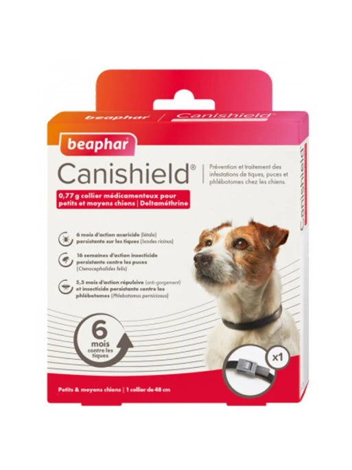 Le collier antiparasitaire Canishield de Beaphar</strong> est un produit complet, d’ action longue duru00e9e, pour protu00e9ger votre chien des puces, tiques et phlu00e9bothomes et donc des maladies qu’ils transmettent.</h2> », »available_now »: »Expu00e9diu00e9 en 24h », »available_later »: »Expu00e9diu00e9 sous 5 u00e0 10 jours », »id »:11920, »id_product »:11920, »out_of_stock »:2, »new »:0, »id_product_attribute »:157997, »quantity_wanted »:1, »extraContent »:[], »allow_oosp »:1, »category »: »antiparasitaires », »category_name »: »Antiparasitaires », »link »: »https://www.naturedog.fr/antiparasitaires/11920-collier-canishield-anti-phlebotome-anti-tique-et-anti-puce.html », »attribute_price »:18.416667, »price_tax_exc »:15.654167, »price_without_reduction »:22.1, »reduction »:3.315, »specific_prices »:{« id_specific_price »: »2380959″, »id_specific_price_rule »: »0″, »id_cart »: »0″, »id_product »: »11920″, »id_shop »: »0″, »id_shop_group »: »0″, »id_currency »: »0″, »id_country »: »0″, »id_group »: »0″, »id_customer »: »0″, »id_product_attribute »: »0″, »price »: »-1.000000″, »from_quantity »: »1″, »reduction »: »0.150000″, »reduction_tax »: »1″, »reduction_type »: »percentage », »from »: »2024-06-04 00:00:00″, »to »: »0000-00-00 00:00:00″, »score »: »32″}, »quantity »:8, »quantity_all_versions »:32, »id_image »: »fr-default », »features »:{« 17 »:{« values »:[« Colliers »], »name »: »Type », »id_feature »: »17″, »value »: »Colliers »}, »58″:{« values »:[« Puces, tiques & phlu00e9botomes »], »name »: »Cibles », »id_feature »: »58″, »value »: »Puces, tiques & phlu00e9botomes »}}, »attachments »:[], »virtual »:0, »pack »:0, »packItems »:[], »nopackprice »:0, »customization_required »:false, »attributes »:{« 98 »:{« id_attribute »: »3175″, »id_attribute_group »: »98″, »name »: »1 collier », »group »: »quantitu00e9″, »reference »: »17207″, »ean13″: »8711231172078″, »isbn »: » », »upc »: » », »mpn »: » »}, »5″:{« id_attribute »: »12744″, »id_attribute_group »: »5″, »name »: »petits & moyens chiens », »group »: »taille », »reference »: »17207″, »ean13″: »8711231172078″, »isbn »: » », »upc »: » », »mpn »: » »}}, »rate »:20, »tax_name »: »TVA FR 20% », »ecotax_rate »:0, »unit_price »: » », »customizations »:{« fields »:[]}, »id_customization »:0, »is_customizable »:false, »show_quantities »:false, »quantity_label »: »Produits », »quantity_discounts »:[], »customer_group_discount »:0, »images »:[{« bySize »:{« small_default »:{« url »: »https://www.naturedog.fr/31446-small_default/collier-canishield-anti-phlebotome-anti-tique-et-anti-puce.jpg », »width »:75, »height »:75}, »cart_default »:{« url »: »https://www.naturedog.fr/31446-cart_default/collier-canishield-anti-phlebotome-anti-tique-et-anti-puce.jpg », »width »:125, »height »:125}, »mt_cart_panel »:{« url »: »https://www.naturedog.fr/31446-mt_cart_panel/collier-canishield-anti-phlebotome-anti-tique-et-anti-puce.jpg », »width »:141, »height »:189}, »home_default »:{« url »: »https://www.naturedog.fr/31446-home_default/collier-canishield-anti-phlebotome-anti-tique-et-anti-puce.jpg », »width »:250, »height »:319}, »medium_default »:{« url »: »https://www.naturedog.fr/31446-medium_default/collier-canishield-anti-phlebotome-anti-tique-et-anti-puce.jpg », »width »:452, »height »:452}, »mt_home »:{« url »: »https://www.naturedog.fr/31446-mt_home/collier-canishield-anti-phlebotome-anti-tique-et-anti-puce.jpg », »width »:420, »height »:561}, »mt_medium »:{« url »: »https://www.naturedog.fr/31446-mt_medium/collier-canishield-anti-phlebotome-anti-tique-et-anti-puce.jpg », »width »:513, »height »:684}, »large_default »:{« url »: »https://www.naturedog.fr/31446-large_default/collier-canishield-anti-phlebotome-anti-tique-et-anti-puce.jpg », »width »:800, »height »:800}}, »small »:{« url »: »https://www.naturedog.fr/31446-small_default/collier-canishield-anti-phlebotome-anti-tique-et-anti-puce.jpg », »width »:75, »height »:75}, »medium »:{« url »: »https://www.naturedog.fr/31446-medium_default/collier-canishield-anti-phlebotome-anti-tique-et-anti-puce.jpg », »width »:452, »height »:452}, »large »:{« url »: »https://www.naturedog.fr/31446-large_default/collier-canishield-anti-phlebotome-anti-tique-et-anti-puce.jpg », »width »:800, »height »:800}, »legend »: »Collier Canishield anti-phlu00e9botome, anti-tique et anti-puce », »id_image »: »31446″, »cover »: »1″, »position »: »1″, »associatedVariants »:[« 157997″]}], »cover »:{« bySize »:{« small_default »:{« url »: »https://www.naturedog.fr/31446-small_default/collier-canishield-anti-phlebotome-anti-tique-et-anti-puce.jpg », »width »:75, »height »:75}, »cart_default »:{« url »: »https://www.naturedog.fr/31446-cart_default/collier-canishield-anti-phlebotome-anti-tique-et-anti-puce.jpg », »width »:125, »height »:125}, »mt_cart_panel »:{« url »: »https://www.naturedog.fr/31446-mt_cart_panel/collier-canishield-anti-phlebotome-anti-tique-et-anti-puce.jpg », »width »:141, »height »:189}, »home_default »:{« url »: »https://www.naturedog.fr/31446-home_default/collier-canishield-anti-phlebotome-anti-tiq