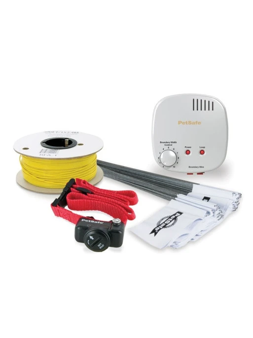 Ce système très fiable consiste en un fil permettant, une fois enterré, de créer un périmètre duquel votre chien va apprendre à ne plus sortir.