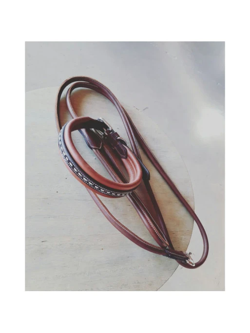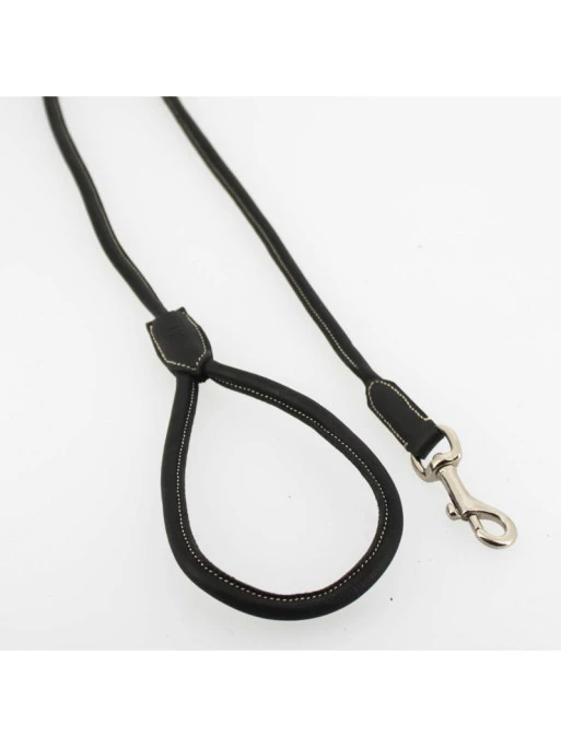 Voici un accessoire qui vous permettra de tenir votre chien avec classe et chic sur les terrains de concours d’équitation ou aux écuries. Dotée d’une poignée et d’un mousqueton en laiton, elle se distingue par son design harmonieux tout en rondeur, ainsi que par sa couture « point sellier ».