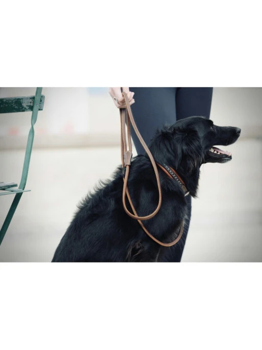 La laisse en cuir rond Pénélope permet aux cavaliers d’équiper aussi élégamment leur chien que leur cheval
