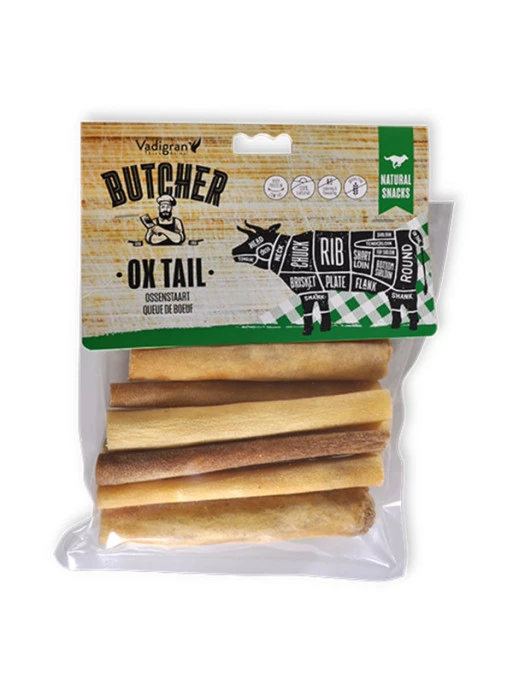 Parfaite pour subvenir au besoin de mastication quotidien de votre chien, la friandise queue de bœuf Butcher 215g Vadigran est aussi délicieuse que saine